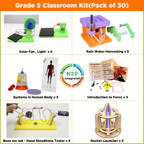 Class 5 NEP-Aligned STEM Classroom Set | 30 Kits (6 Topics x 5 Kits)